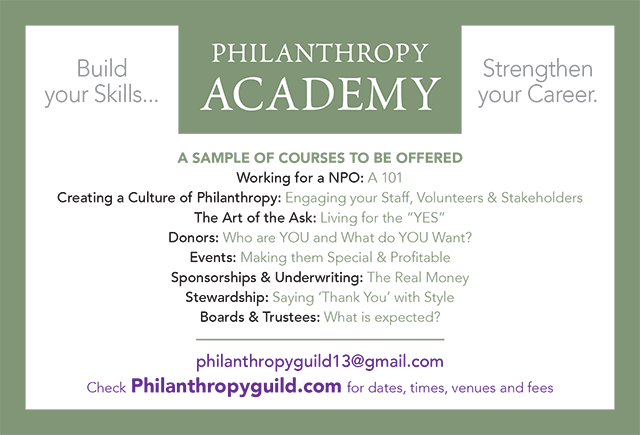 Welcome to Philanthropy Guild's Academy, a new venture to provide educational resources to enhance your knowledge of the non-for-profit sector.Classes will begin in September, so check back for dates, times and locations this summer. Here's a glimpse of some of the topics that will be covered throughout the year: